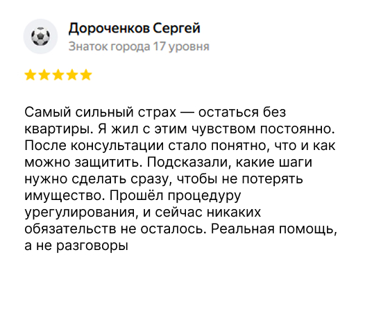 Обращаем ваше внимание: вся информация, представленная на сайте, включая цены, описания товаров и услуг, а также условия сотрудничества, носит информационный характер и не является публичной офертой, определяемой положениями статьи 437 Гражданского кодекса Российской Федерации. Банкротство влечет негативные последствия, в том числе ограничения на получение кредита и повторное банкротство в течение пяти лет. Предварительно обратитесь к своему кредитору и в МФЦ